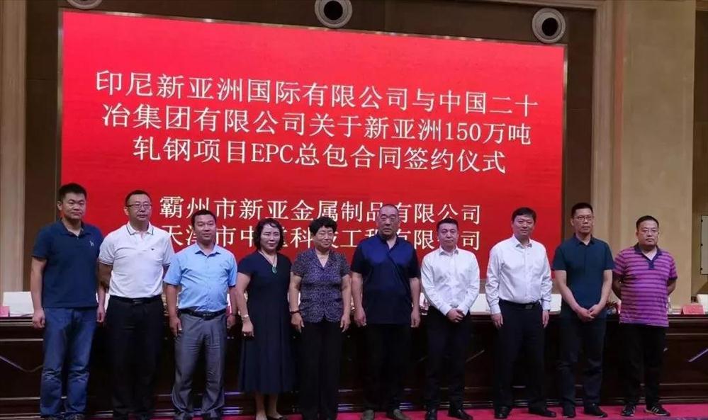 7月19日上午,中國二十冶集團(tuán)公司黨委副書記、總經(jīng)理徐立,集團(tuán)公司副總經(jīng)理張鋼雨在廊坊市出席印尼新亞洲國際有限公司年產(chǎn)150萬噸軋鋼項(xiàng)目EPC總承包合同簽約儀式。