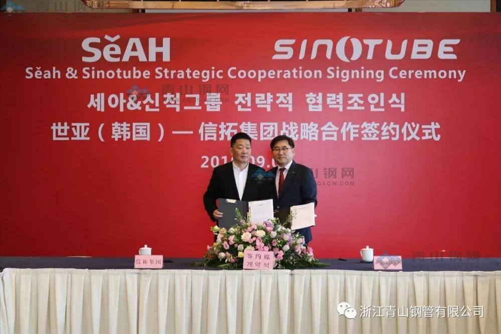 9月6日,信拓集團(tuán)與韓國世亞集團(tuán)舉行戰(zhàn)略合作簽約儀式,并簽署了精密管合資公司投資協(xié)議。世亞集團(tuán)社長李智容、信拓集團(tuán)董事長張積敏、青山鋼管董事長張路遙、青山特材董事長季華進(jìn)等領(lǐng)導(dǎo)親臨簽約現(xiàn)場,共同參與和見證了此次簽約儀式。世亞集團(tuán)是韓國50強(qiáng)企業(yè),是唯一的不銹鋼線材、鋼棒、鋼管一體化生產(chǎn)企業(yè)。