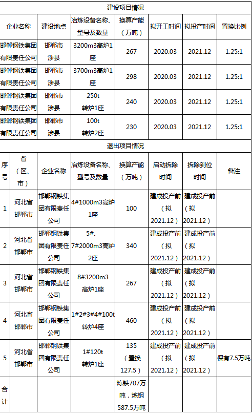 河鋼邯鋼老區(qū)退城整合項(xiàng)目產(chǎn)能置換方案公示