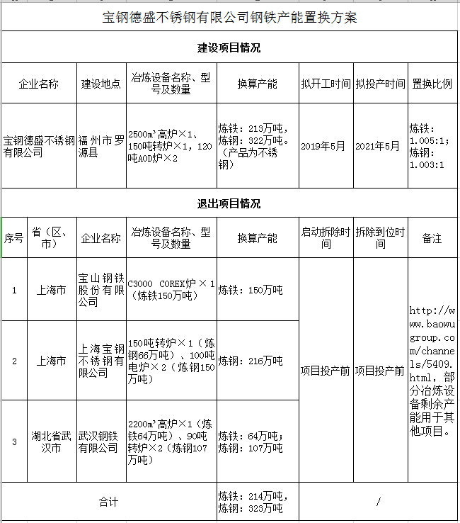 寶鋼德盛不銹鋼有限公司產(chǎn)能置換方案公示