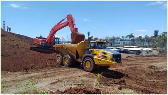 2019年10月1日上午9時30分,印尼緯達貝園區(qū)Coastal礦區(qū),隨著現(xiàn)場挖機的一陣轟鳴聲,滿載著一斗紅土鎳礦的挖機鏟斗慢慢升起倒入現(xiàn)場等候的ADT車中,開礦現(xiàn)場隨即響起雷鳴般掌聲,這標志著印尼緯達貝工業(yè)園區(qū)紅土鎳礦開采正式揭開序幕!