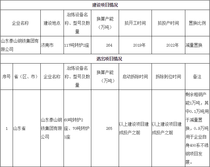 山東泰山鋼鐵集團(tuán)有限公司產(chǎn)能置換方案公示