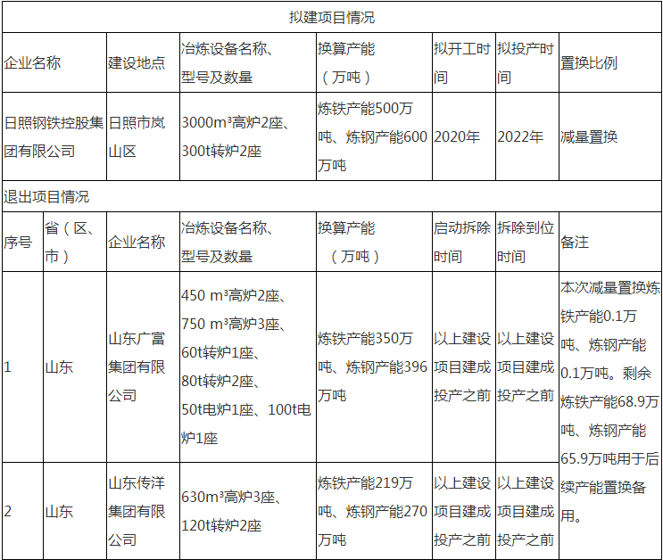 日照鋼鐵控股集團(tuán)有限公司產(chǎn)能置換方案公示