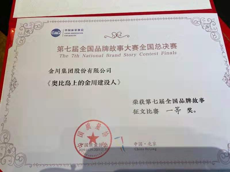 11月29日,從中國(guó)質(zhì)量協(xié)會(huì)主辦的2019年品牌創(chuàng)新大會(huì)暨第七屆全國(guó)品牌故事大賽全國(guó)總決賽傳來(lái)好消息:金川集團(tuán)公司選送的《奧比島上的金川建設(shè)人》獲得品牌故事征文類(lèi)一等獎(jiǎng),金川集團(tuán)公司獲得第七屆全國(guó)品牌故事大賽最佳企業(yè)組織獎(jiǎng)。