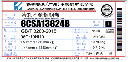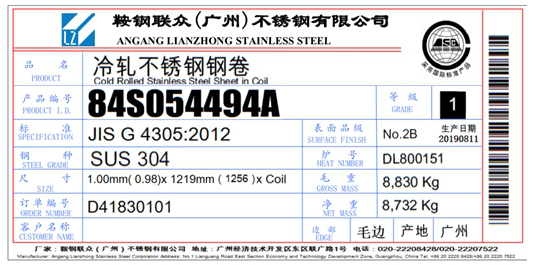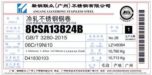 一、同意鞍鋼聯(lián)眾(廣州)不銹鋼有限公司變更不銹鋼冷軋卷板產(chǎn)品標(biāo)牌。