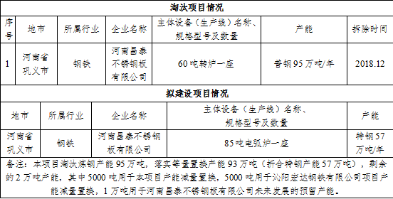 河南昌泰不銹鋼板有限公司產(chǎn)能置換方案變更及產(chǎn)能出讓公示