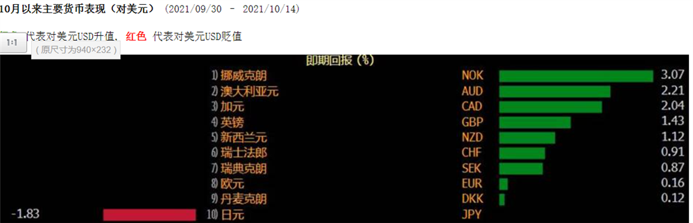10月以來(lái)主要貨幣表現(xiàn)(對(duì)美元) (2021/09/30 – 2021/10/14)