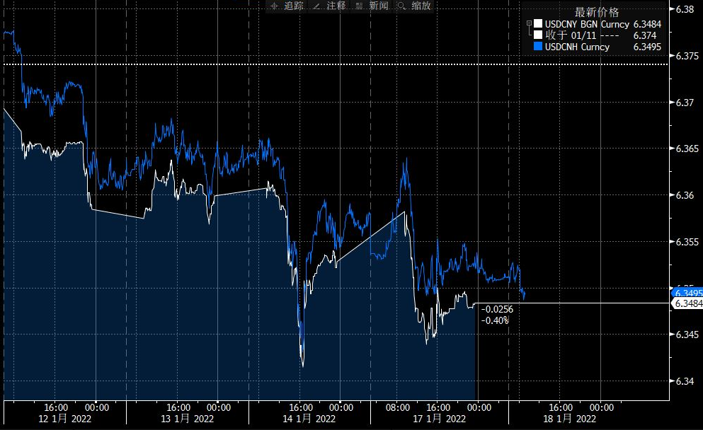 1月18日,人民幣中間價(jià)報(bào)6.3521,上調(diào)78點(diǎn),上一交易日中間價(jià)報(bào)6.3599,在岸人民幣上一交易日收?qǐng)?bào)6.3466。