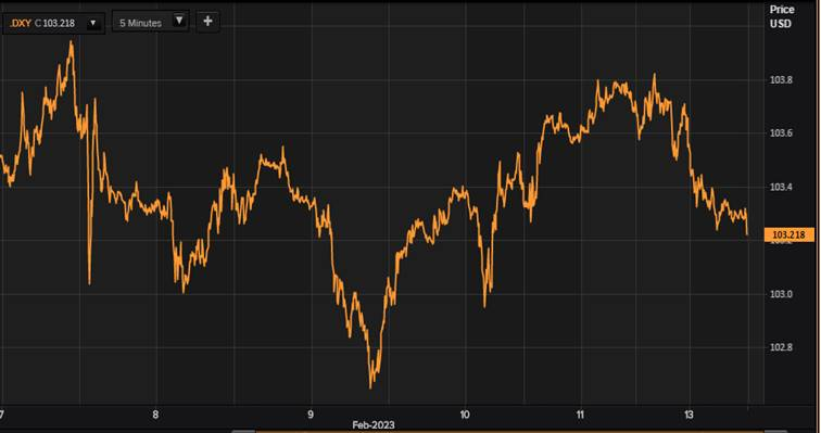 環(huán)球市場方面,美國勞工部今晚將公布1月份美國CPI數(shù)據(jù)。在美聯(lián)儲連續(xù)放緩加息腳步,勞動力市場卻依舊火爆的情況下,市場期望從此次通脹報告中獲得美聯(lián)儲加息路徑的更多線索。調(diào)查預(yù)計,美國1月份CPI同比漲幅或?qū)⒂扇ツ?/span>12月的6.5%放緩至6.2%,環(huán)比則將由降0.1%加速至上升0.4%。美國勞工部上周剛剛調(diào)整CPI分項權(quán)重,其中住房項權(quán)重上調(diào),交通、食品項權(quán)重下調(diào),分析預(yù)計此次調(diào)整或?qū)е露唐趦?nèi)通脹數(shù)據(jù)上升。美國三大股指全線收漲, 國際貴金屬期貨普遍收跌, 紐約尾盤,美元指數(shù)跌0.3%報103.27,非美貨幣多數(shù)上漲。