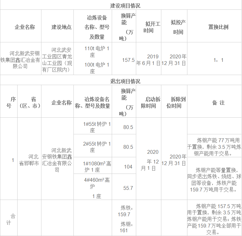 河北新武安鋼鐵集團鑫匯冶金有限公司建設(shè)項目產(chǎn)能置換方案公示