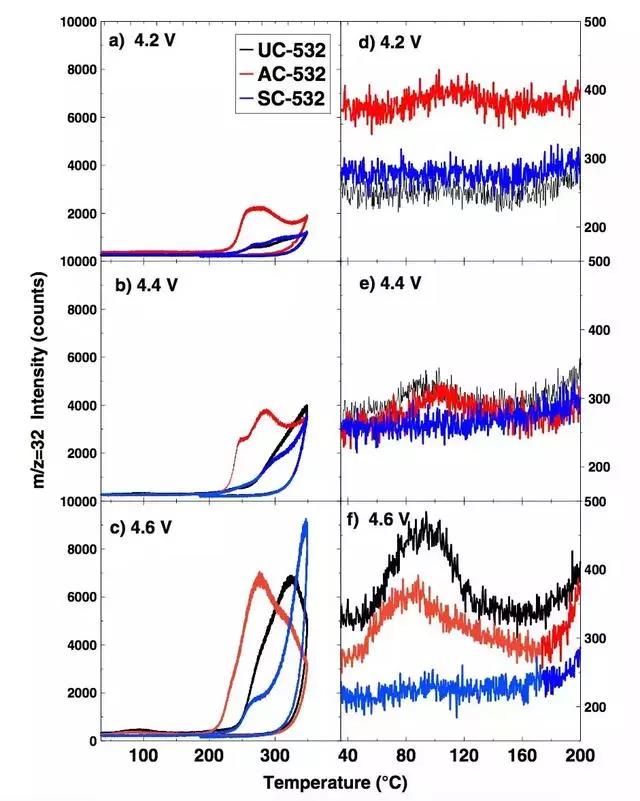 近期多起電動汽車自燃事故,將電動汽車的安全性問題推上了風口浪尖,前面我們已經(jīng)介紹過隨著Ni含量的提高會導致材料的熱穩(wěn)定性下降,而單晶材料由于晶體結構更加穩(wěn)定,因此熱穩(wěn)定性也會相應提高,O2釋放量實驗表明單晶NCM523材料不但在80℃附近沒有O2釋放,而且在200-350℃范圍內的O2釋放峰的溫度也要高于二次顆粒NCM523材料[5],這也表明單晶材料在熱穩(wěn)定上具有一定的優(yōu)勢。