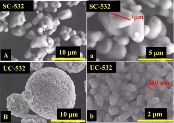 高鎳材料存在的這些問題嚴重制約了高容量電芯產品的發(fā)展,而單晶材料的出現(xiàn)了為高容量正極材料的開發(fā)打開一個嶄新的方向,所謂單晶材料是相對于傳統(tǒng)的二次顆粒材料而言的,傳統(tǒng)的NCM材料多為200-300nm的一次顆粒團聚而成的二次顆粒,而單晶材料則直接由直徑2-5um的獨立晶體構成,由于更高結晶度、更加穩(wěn)定的層狀結構、各向異性特征,單晶材料無論是在循環(huán)性能,還是在熱穩(wěn)定性,以及產氣量等指標上都要優(yōu)于傳統(tǒng)的二次顆粒NCM材料[5]。