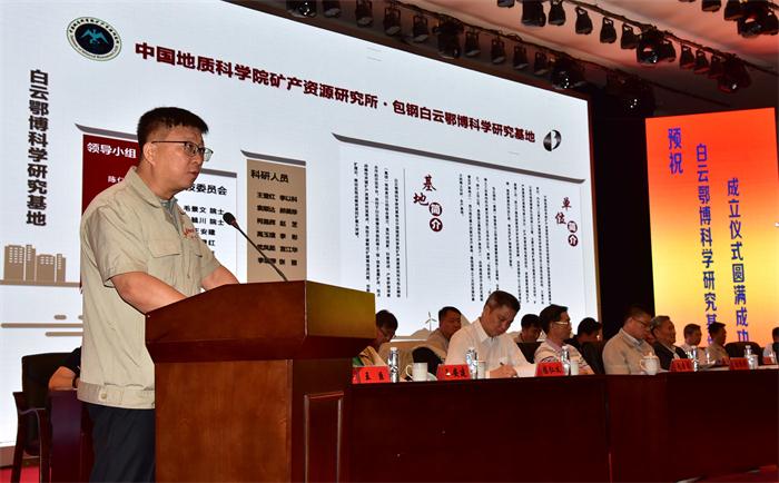 中國工程院院士、中國地質(zhì)科學(xué)院院士陳毓川、毛景文作專題報告。自治區(qū)自然資源廳副廳長王杰,中國地質(zhì)科學(xué)院礦產(chǎn)資源研究所所長陳仁義講話。包鋼(集團)公司副總經(jīng)理劉振剛、董事李曉參加儀式。