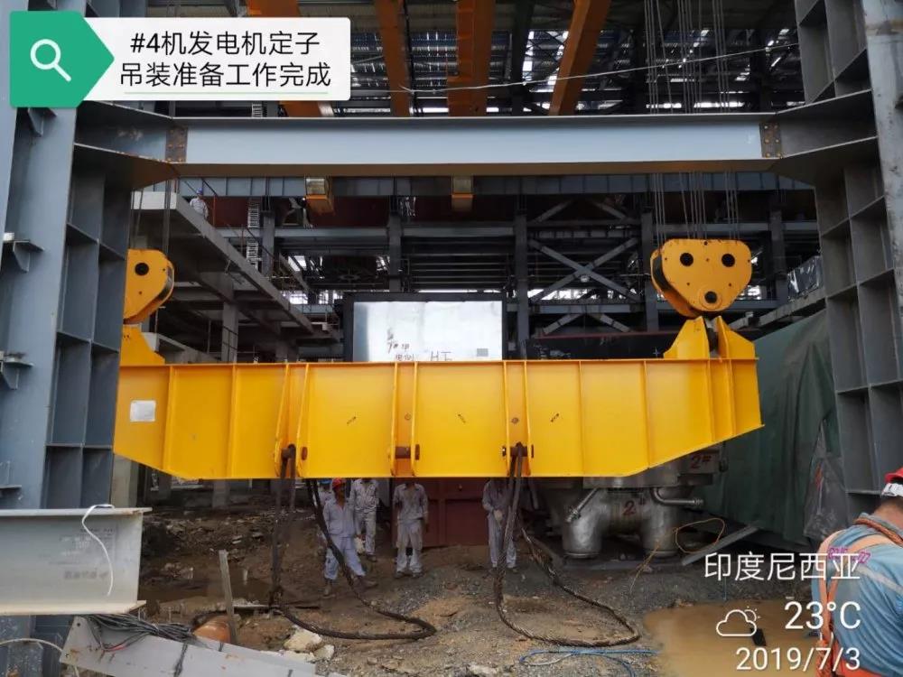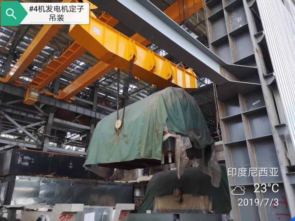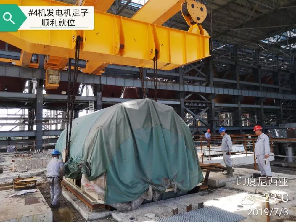 7月3日11時(shí)22分,西北火電印尼2×135MW燃煤項(xiàng)目#4機(jī)組發(fā)電機(jī)定子順利吊裝就位,為整個(gè)汽輪發(fā)電機(jī)組的安裝打下堅(jiān)實(shí)基礎(chǔ)。