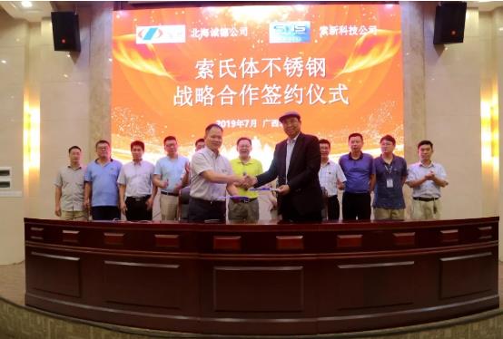 會議由李強主持。雙方本著互利互信、合作共贏,開拓進取的宗旨;在索氏體不銹鋼領(lǐng)域建立長期的戰(zhàn)略合作伙伴關(guān)系。本次簽約標志著北海誠德公司在不銹鋼產(chǎn)業(yè)發(fā)展上獲得新進展,必將進一步提升企業(yè)競爭力,推動高質(zhì)量健康發(fā)展,為不銹鋼行業(yè)的穩(wěn)定發(fā)展貢獻力量。