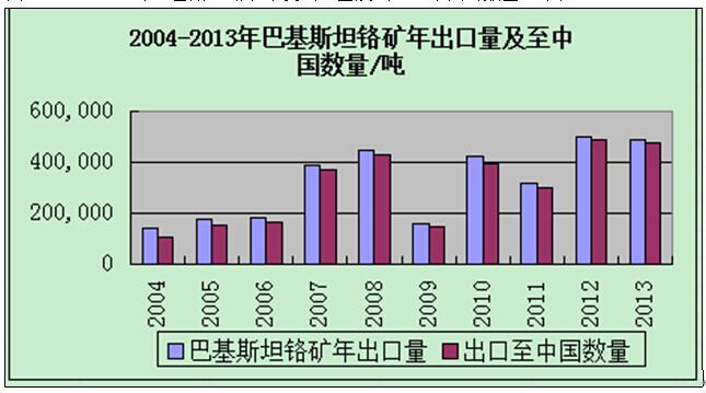 2004-2014年巴基斯坦鉻礦出口量及出口市場分析