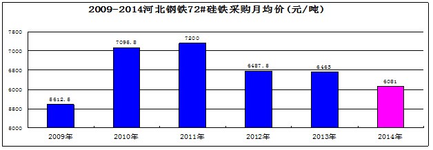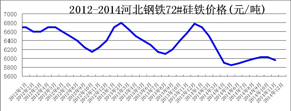 因?yàn)槌隹谙拗贫坏貌幻鎸?duì)的封閉市場(chǎng)環(huán)境里,產(chǎn)量與價(jià)格的關(guān)系無(wú)疑只會(huì)反向運(yùn)行。筆者曾分別在2013年11月21日的成都鐵合金年會(huì)與2014年5月17日的銀川硅鐵與金屬鎂會(huì)議上,兩次都預(yù)測(cè)過(guò)硅鐵價(jià)格上漲200元/噸。為了會(huì)議氣氛,不忍驚醒持續(xù)漲價(jià)的美夢(mèng),兩次都沒(méi)有預(yù)測(cè)上漲后會(huì)跌落多少。河北鋼鐵的75B硅鐵采購(gòu)價(jià)格在2013年12月從6600元上漲到6800元/噸,進(jìn)入2014年以后一路下跌,直到5月的5850元/噸,跌幅高達(dá)930元/噸。6月又開(kāi)始回升,9月上漲到6030元后停滯不前,11月再度回落至5960元/噸。