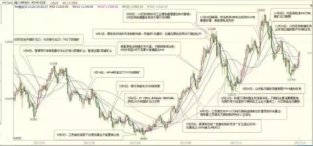 圖1:2017年LME鎳電子走勢及主要影響因素對比圖