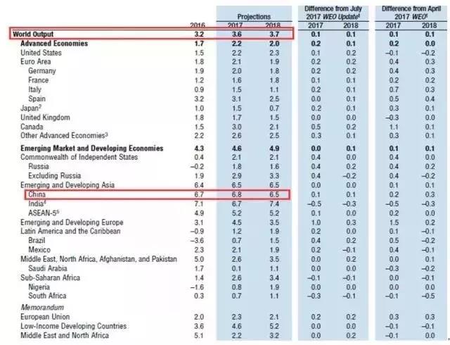 表5:IMF于2017年10月份發(fā)布的最新《世界經(jīng)濟展望》各國GDP增速一覽表(單位:%)