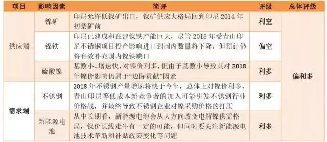 鎳鐵:印尼已建成和在建鎳鐵產(chǎn)能巨大,盡管2018年受青山印尼不銹鋼項目投產(chǎn)影響進口到國內(nèi)數(shù)量將下降,但預(yù)計仍將有效補充國內(nèi)鎳鐵缺口,對鎳價偏空