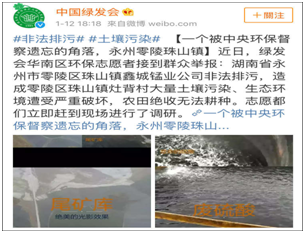該微博附上了微信公眾號(hào)“華南環(huán)境報(bào)道”6日的文章《一個(gè)被中央環(huán)保督查遺忘的角落,永州零陵珠山鎮(zhèn)》。