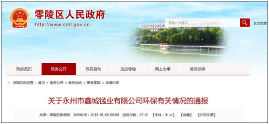 但是,微信公眾號(hào)“華南環(huán)境報(bào)道”8日繼續(xù)發(fā)文《零陵區(qū)鑫城錳業(yè)污染是政府的缺席?還是企業(yè)的任性?》。