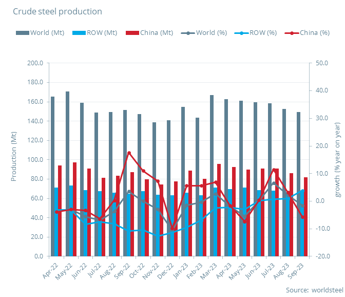 2023年9月全球粗鋼產(chǎn)量