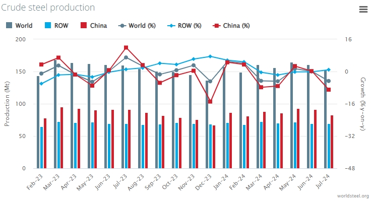 2024年7月全球粗鋼產(chǎn)量