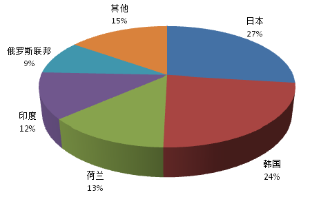 2016年10月中國(guó)錳及其制品(包括廢碎料)主要出口至日本和韓國(guó)