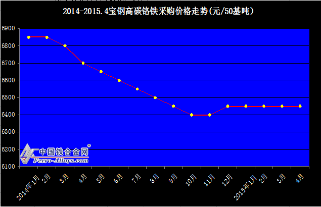 2014-2015.4寶鋼高碳鉻鐵采購價格走勢圖