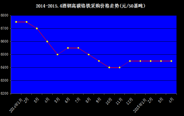 2014-2015.4酒鋼高碳鉻鐵采購價格走勢圖