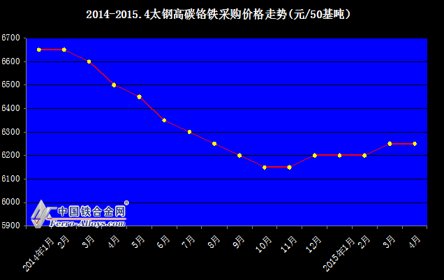 2014-2015.4太鋼高碳鉻鐵采購價格走勢圖