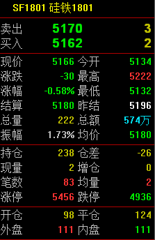 硅鐵:5月5日硅鐵1709/1801收盤