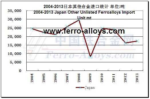 2004-2013日本其他未列名鐵合金進口統(tǒng)計