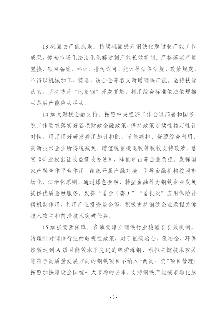 各省、自治區(qū)、直轄市及新疆生產(chǎn)建設(shè)兵團(tuán)工業(yè)和信息化、發(fā)展改革、財(cái)政、自然資源、生態(tài)環(huán)境、商務(wù)主管部門,海關(guān)總署廣東分署、各直屬海關(guān),各有關(guān)中央企業(yè):現(xiàn)將《鋼鐵行業(yè)穩(wěn)增長工作方案》印發(fā)給你們,請結(jié)合實(shí)際,認(rèn)真貫徹實(shí)施。