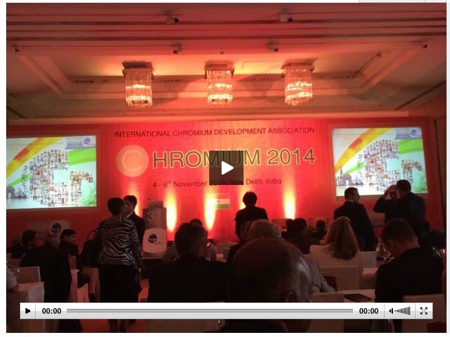 [Ferro-Alloys.com]Organized by ICDA (International Chromium Development Association), “Chromium 2014” was held in New Delhi, India on Nov 5, 2014. India, one of ICDA’s sponsoring countries, is a major chrome ore and ferrochrome supplier in the world. Over 160 guests from South Africa, China, Turkey, USA and EU, representing the local chrome industry, attended the meeting. Karl Liu, Chairman & General Manager of Ferro-Alloys.com, attended the event by the organizer’s invitation.