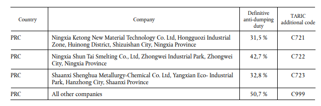 On March 24, 2022, the European Commission(‘the Commission’) initiated an announcement to make a final affirmative anti-dumping ruling on calcium silicon (‘CaSi’) originating in China and decided to levy 31.5% to 50.7% of the products involved from the day after the announcement. A definitive anti-dumping duty is imposed on imports of calcium silicon, currently falling under CN codes ex 7202 99 80 and ex 2850 00 60 (TARIC codes 7202 99 80 30 and 2850 00 60 91) and originating in the People’s Republic of China.